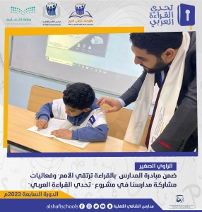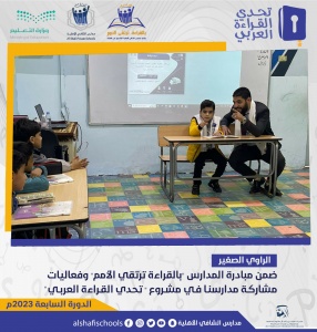 أحد برامج مبادرة مدارس الشافي الأهلية لتشجيع الطلاب على القراءة “بالقراءة ترتقي الأمم “ومشروع “تحدي القراءة العربي “
